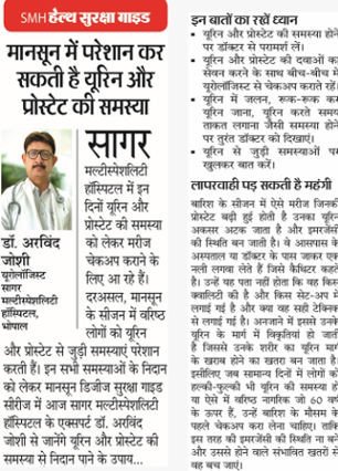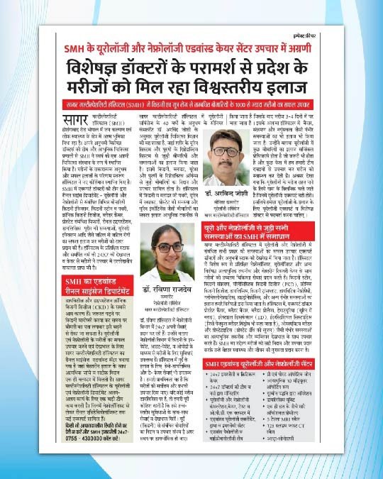 SMH के यूरोलॉजी और नेफ्रोलॉजी एडवांस्ड केयर सेंटर उपचार में अग्रणी विशेषज्ञ डॉक्टरों के परामर्श से प्रदेश के मरीजों को मिल रहा विश्वस्तरीय इलाज