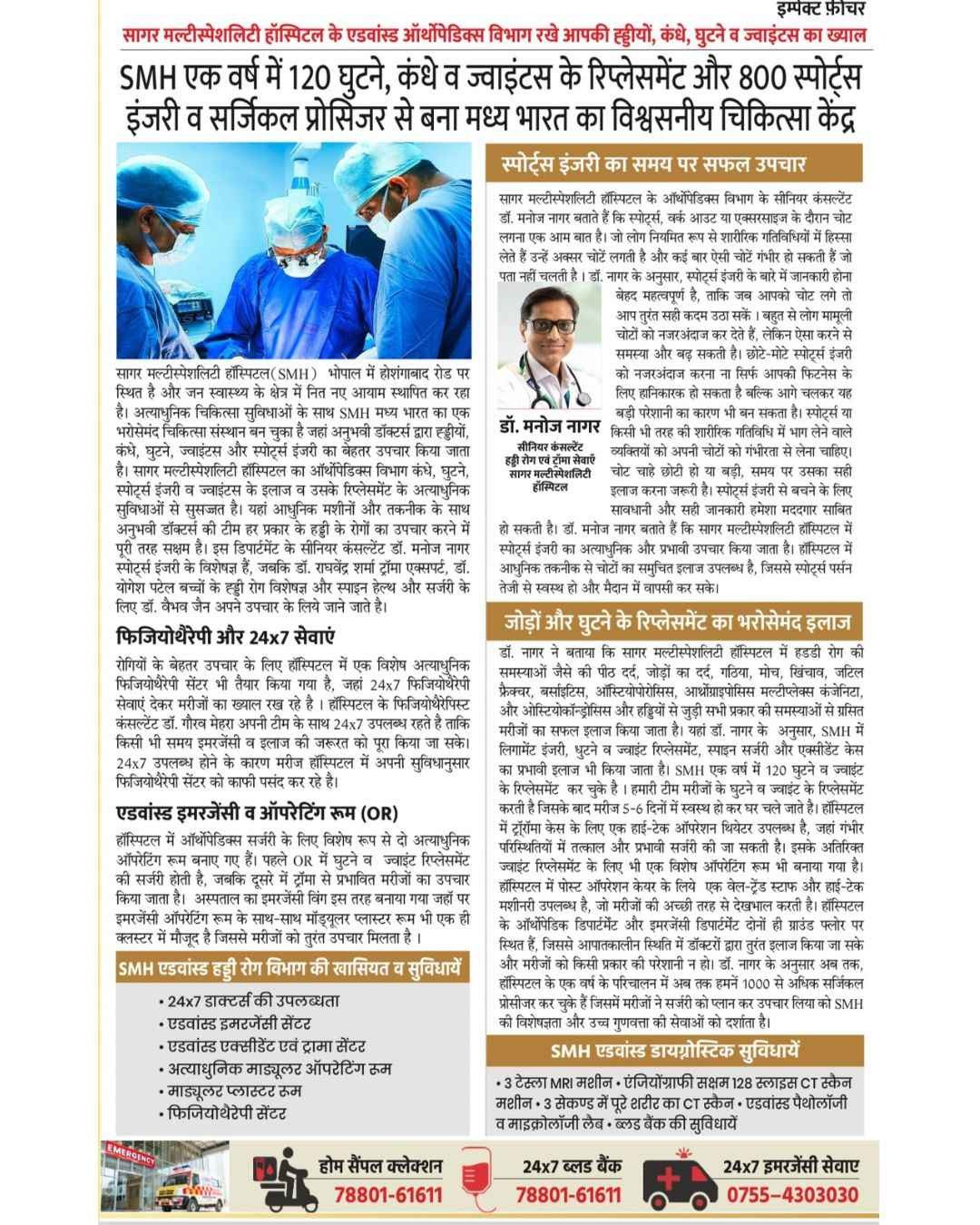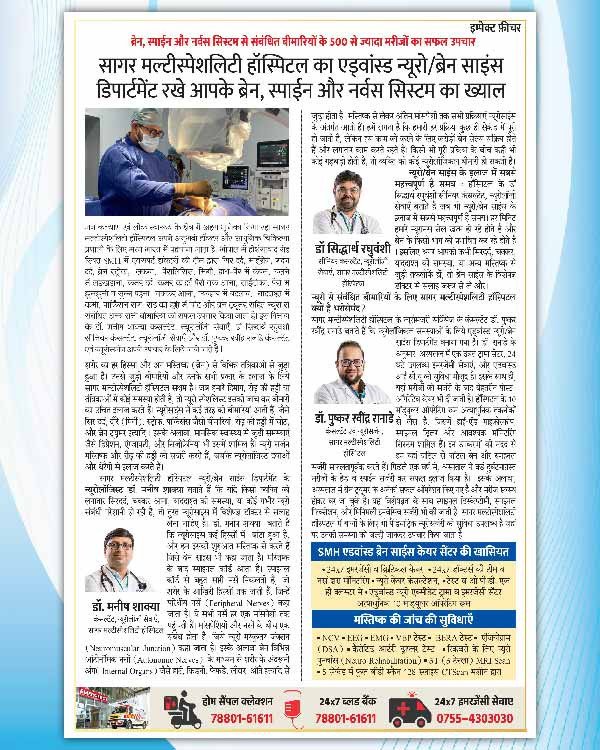सागर मल्टीस्पेशलिटी हॉस्पिटल का एडवांस्ड न्यूरो/ब्रेन साइंस डिपार्टमेंट रखें आपके ब्रेन, स्पाईन और नर्वस सिस्टम का ख्याल